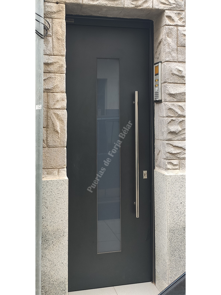 «Puerta para comunidad de chapa lisa y vidrio de seguridad»